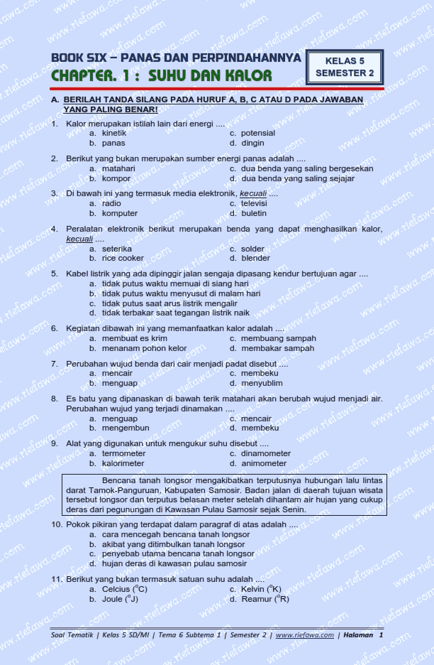 Download Soal Tematik Kelas 5 SD/MI Semester 2